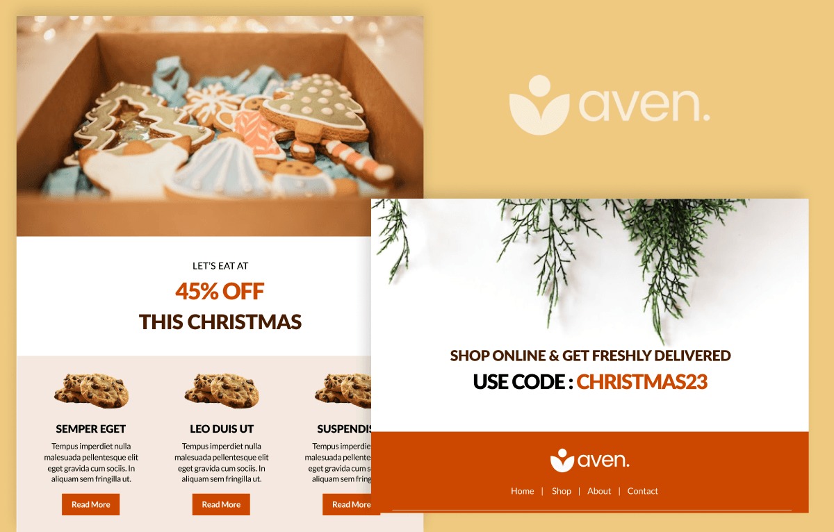 This Christmas HTML email template pack includes 5 responsive newsletter layouts built for holiday marketing campaigns. Perfect for ecommerce sales, festive greetings, and seasonal newsletters, each template comes with inlined CSS, demo assets, and ESP-ready code. Create your holiday email templates HTML in minutes for sales promotions, gift guides, and party invites.