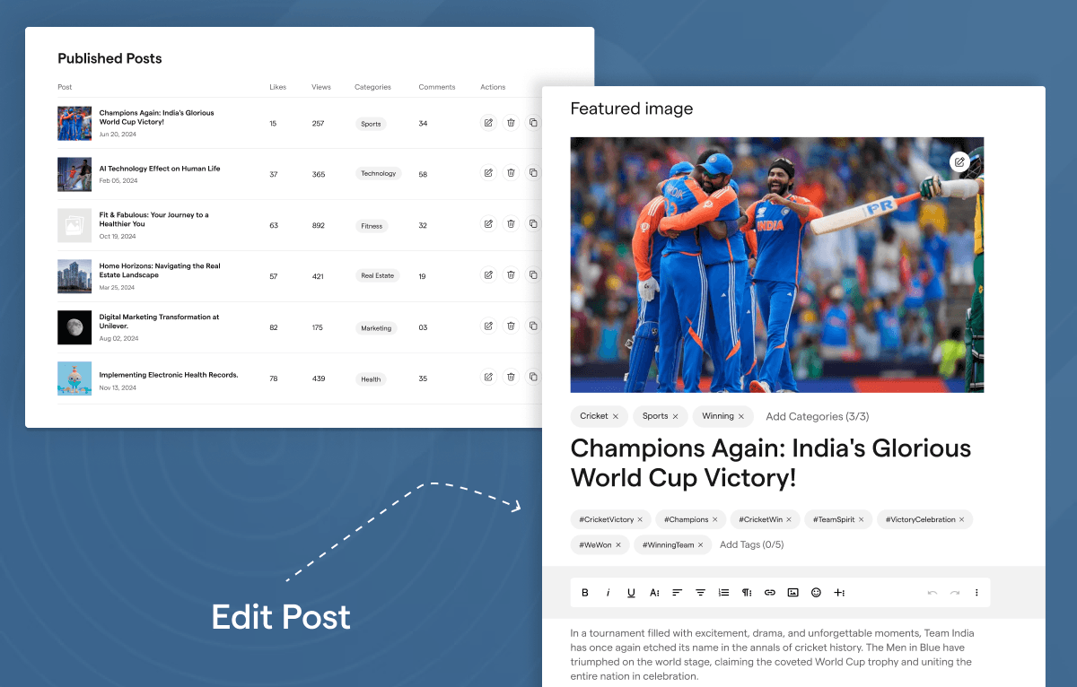 - Author profiles & multi-author support — works for solo and team blogs.