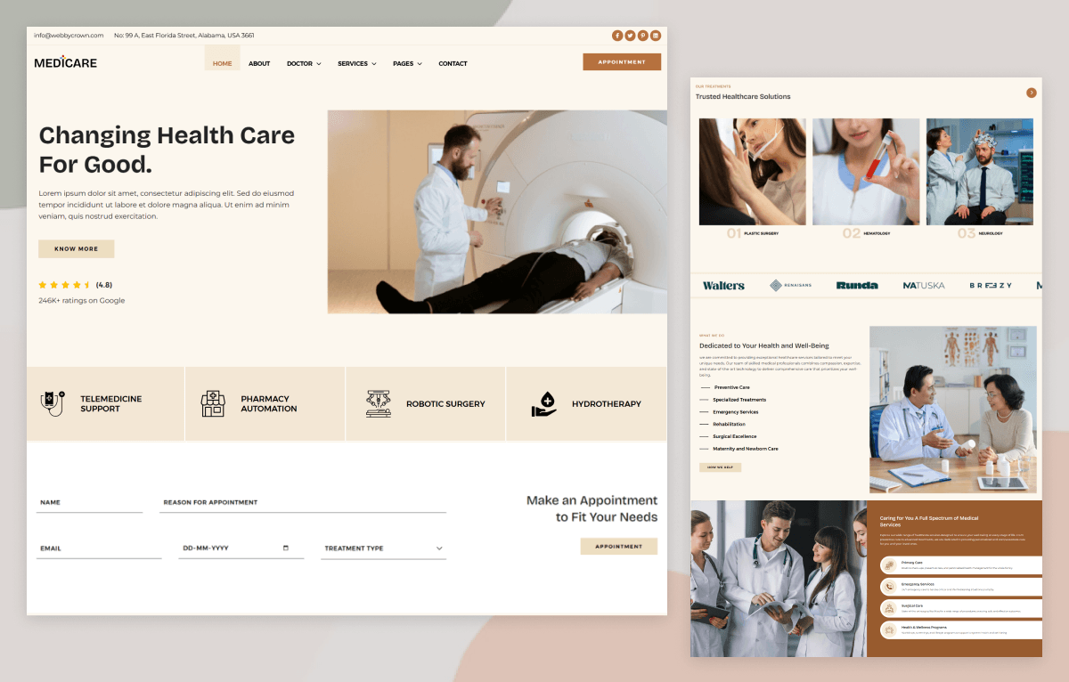- Medicare is ideal for hospitals, clinics, and medical startups looking for a professional online presence: